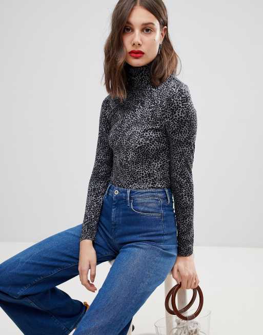 Product code: Grey leopard print turtleneck top sales