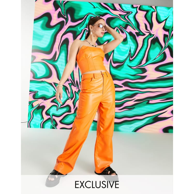 Product code: Orange faux leather pants sales